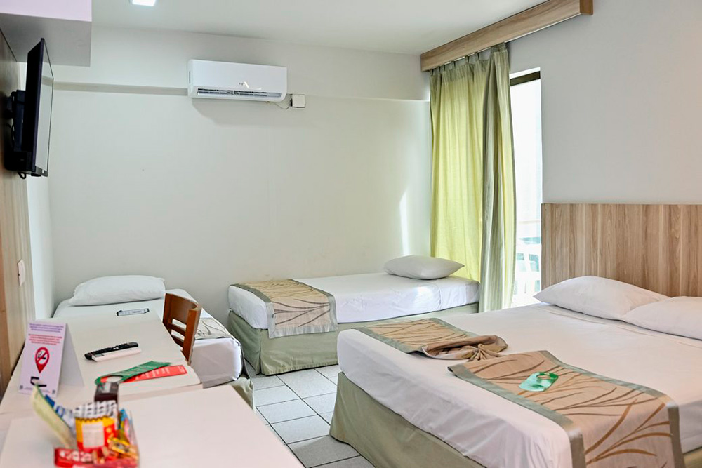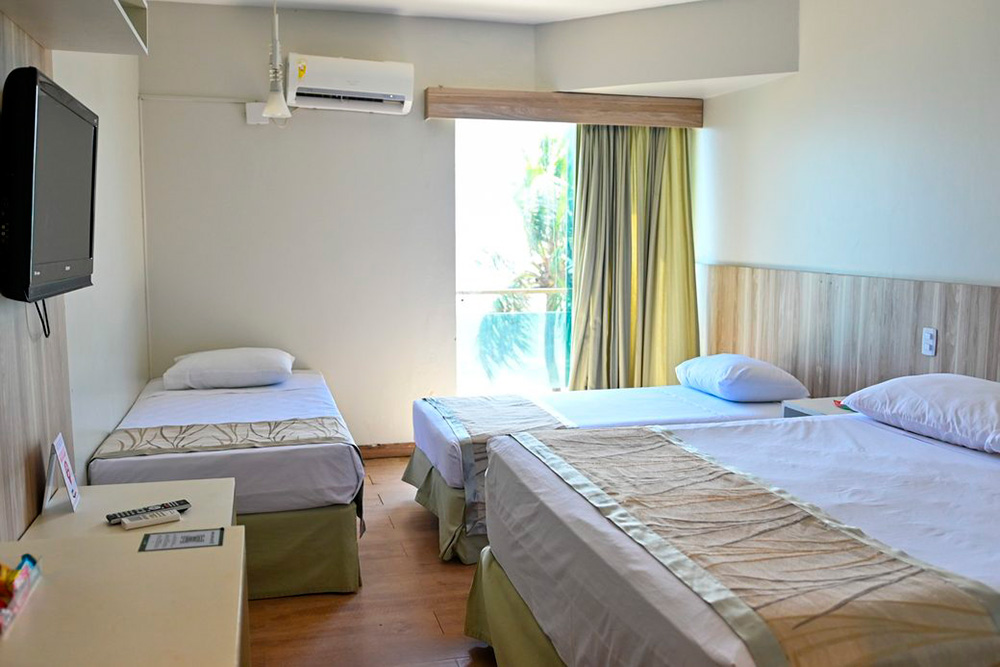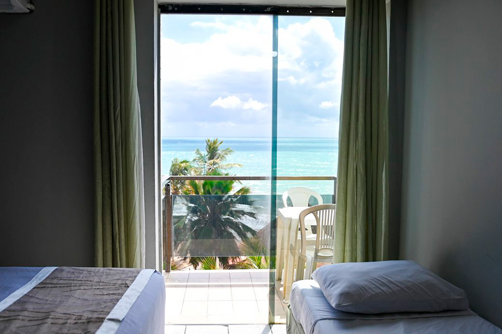 Possui TV a cabo, frigobar completo, ar-condicionado e telefone no quarto para reforçar o conforto com vista para o oceano.