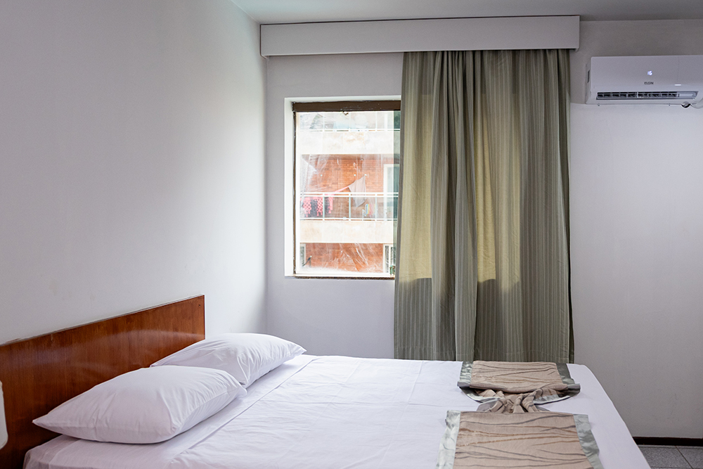 O espaço admite montagem de 1 cama de casal, 1 cama de casal + 1 solteiro ou 1 cama de casal + 2 solteiros, mantendo TV a cabo, frigobar completo, telefone no quarto,ar-condicionado e outros itens de conforto.